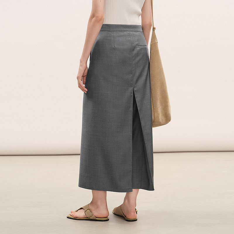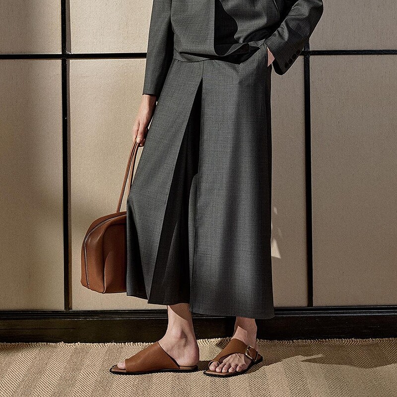 【商场同款】LESS2026春新美丽诺羊毛休闲直筒九分裙裤2Q3E12980