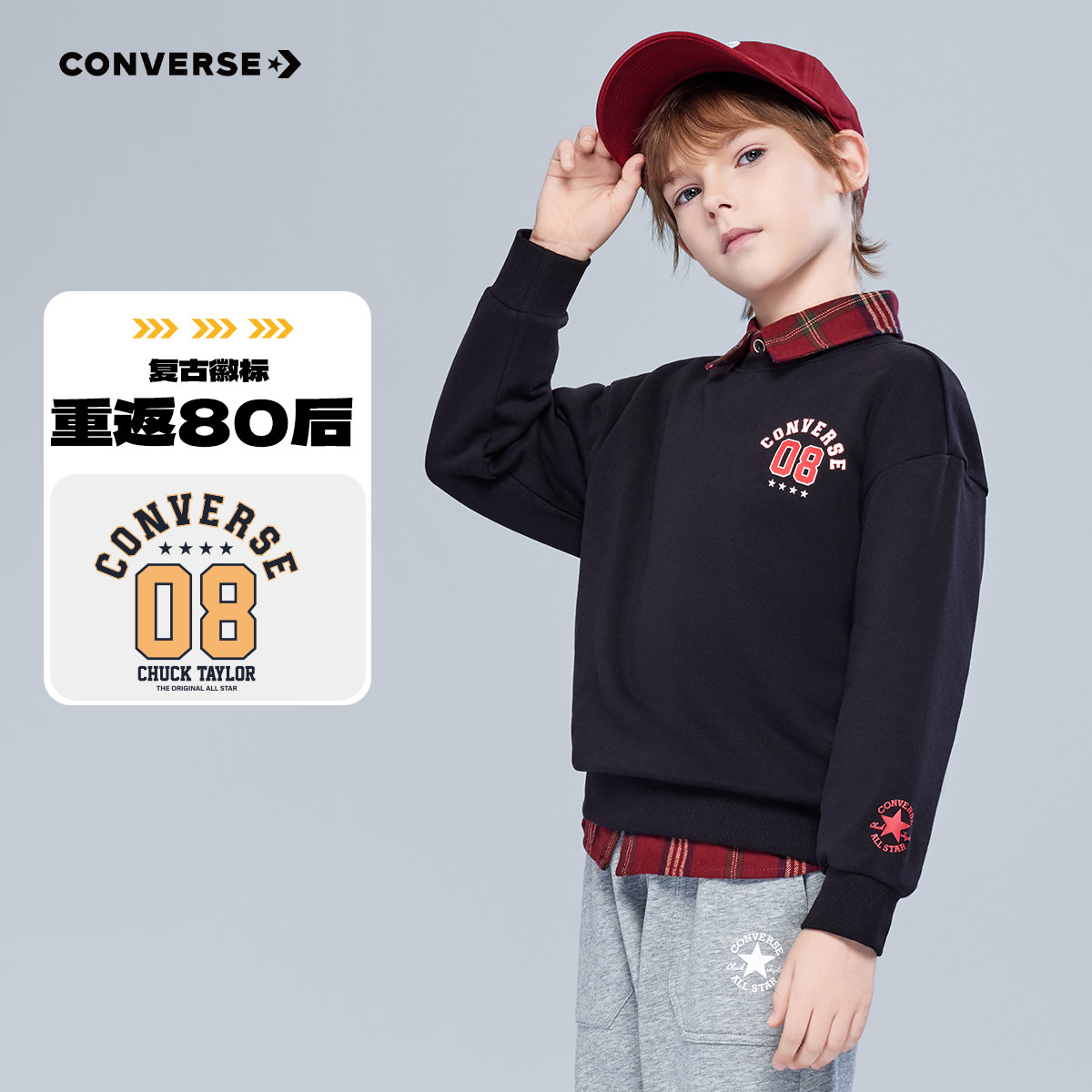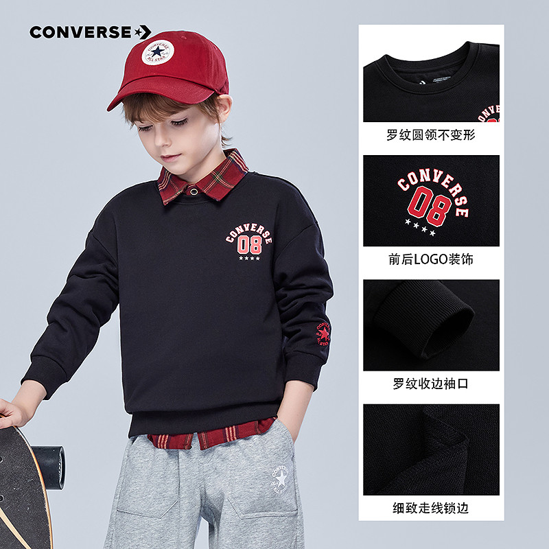 匡威童装男童卫衣青少年春季新款复古印花百搭多色中大童舒适休闲
