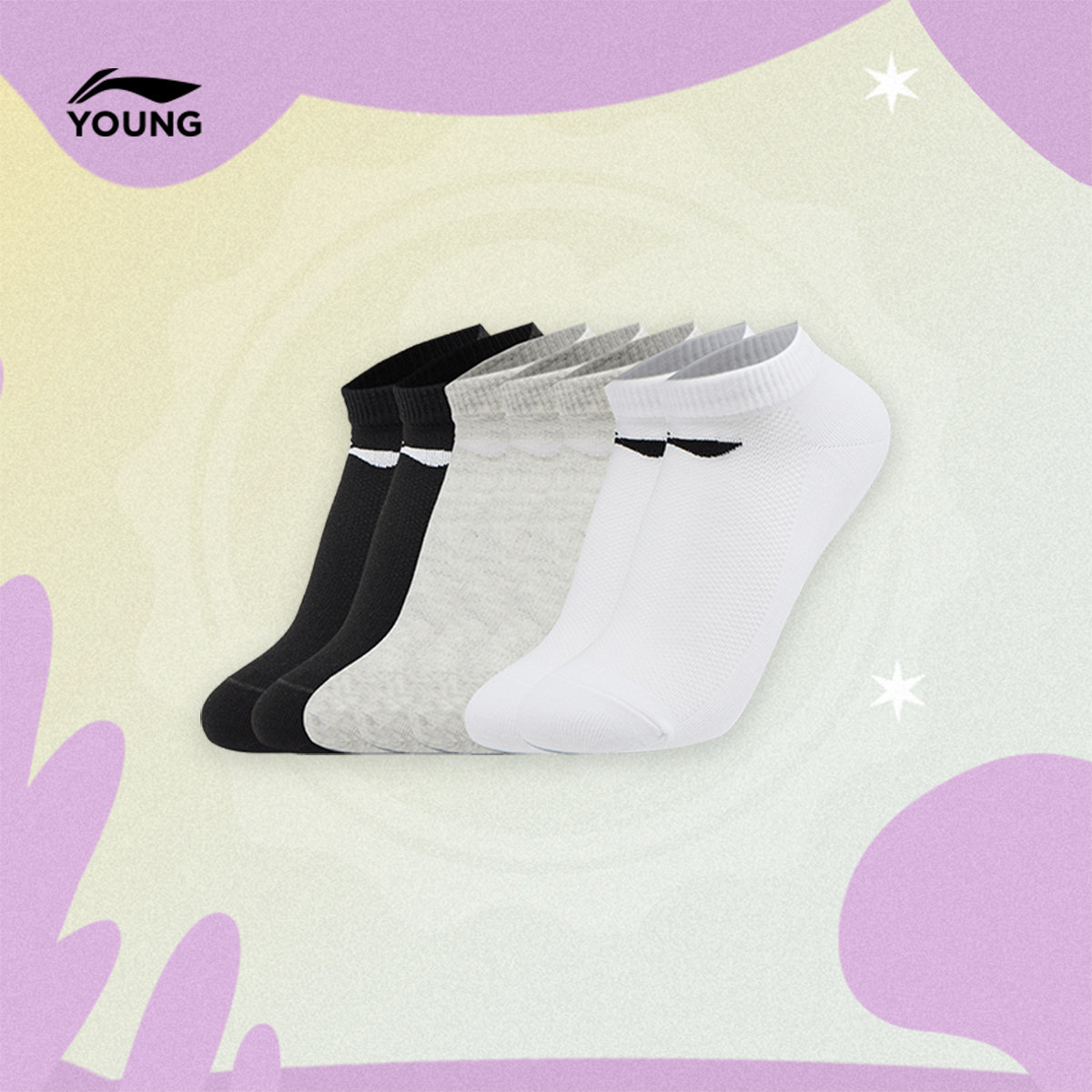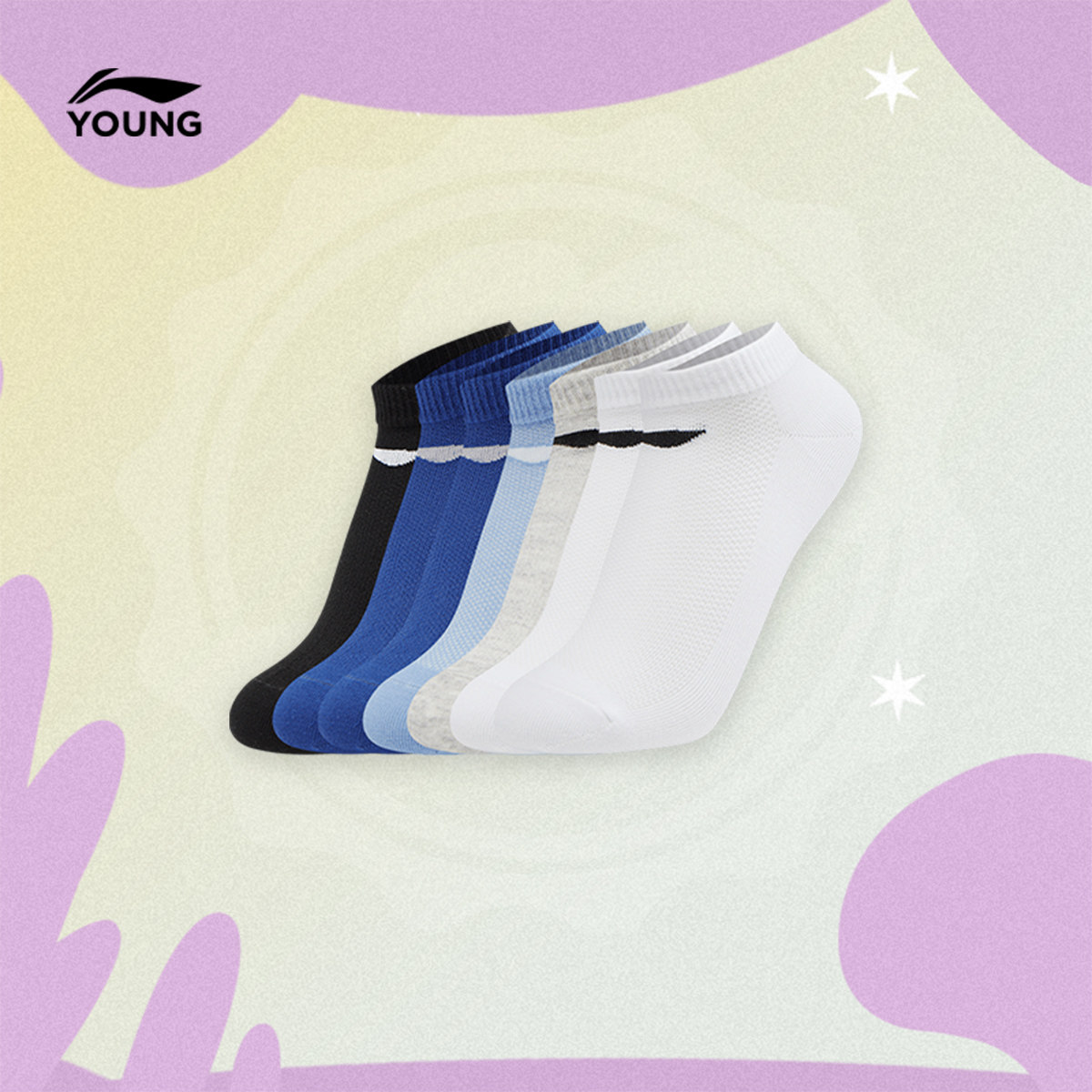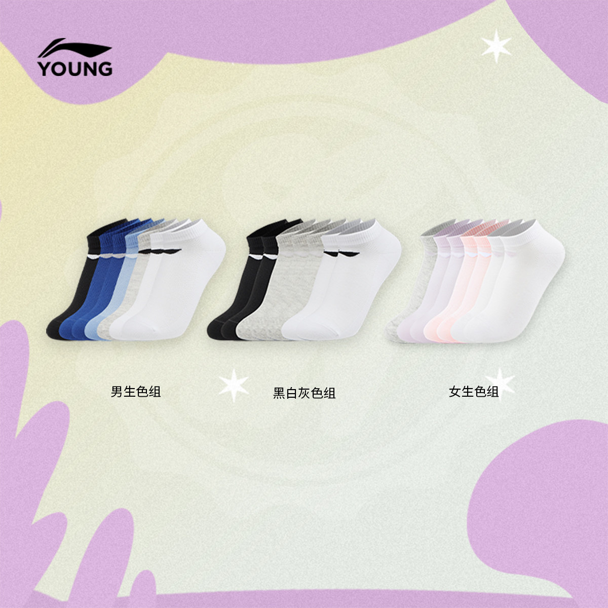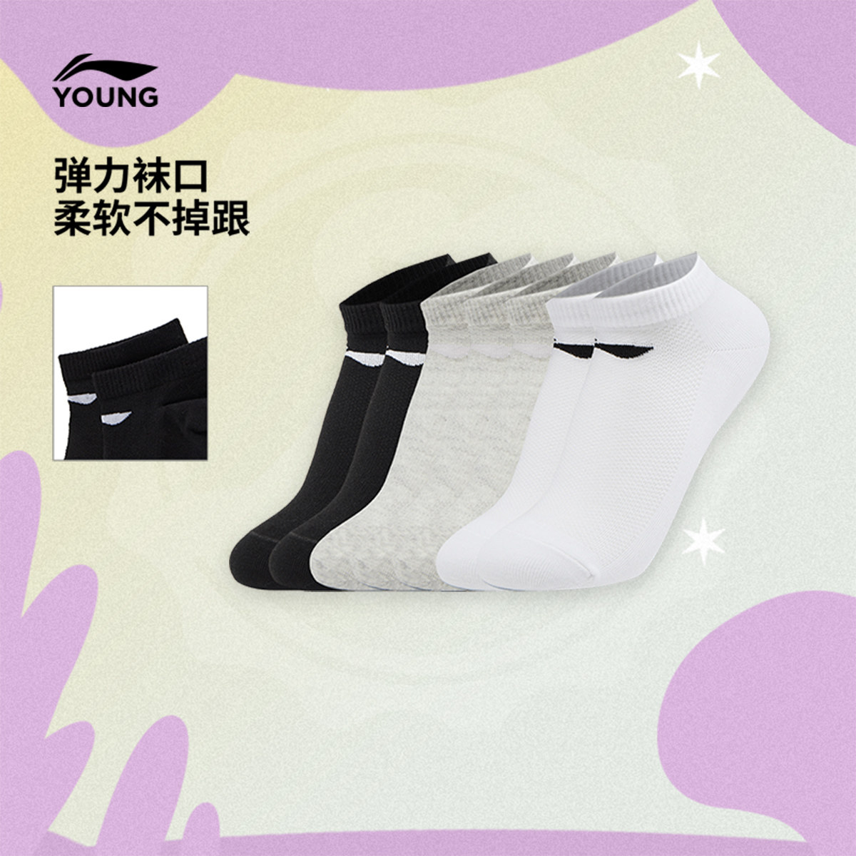 李宁童低跟袜七双装男女大童运动生活系列青少年简约休闲运动袜