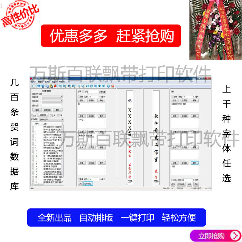 花篮飘带机手机蓝牙版飘带打印机开业送礼花篮飘带署名打字机自动