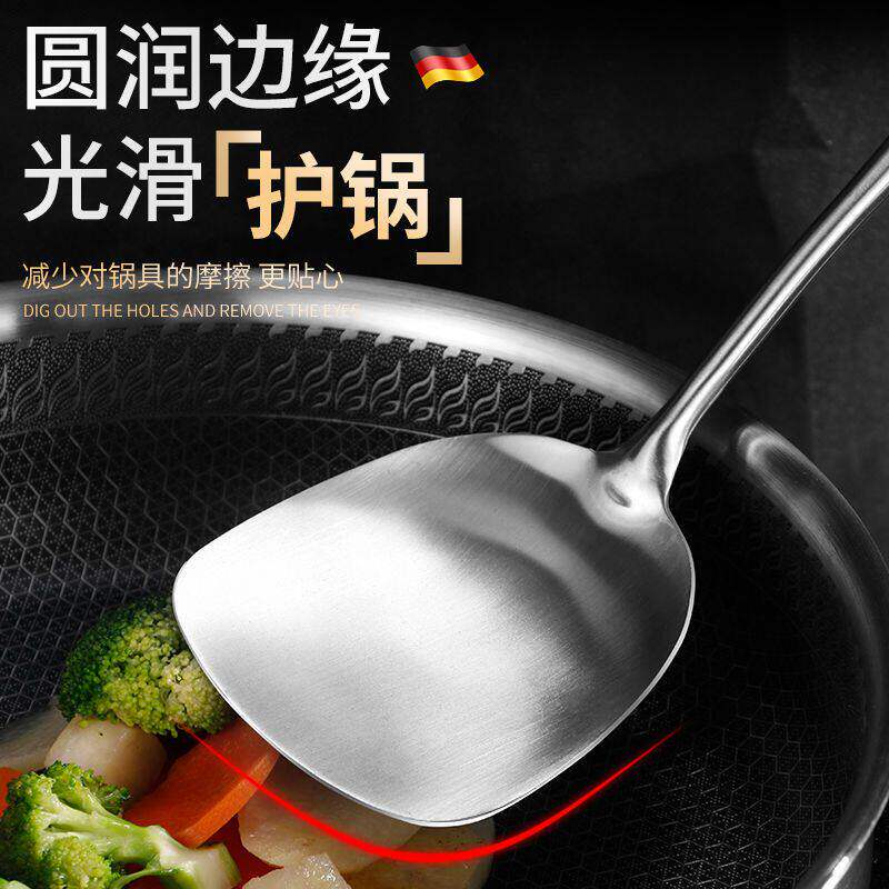 德国316不锈钢锅铲炒菜勺子厨房铲子家用木柄加厚炒铲食品级炒勺
