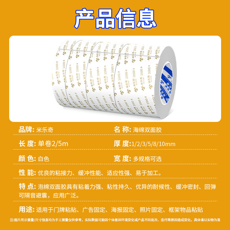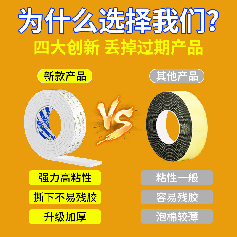 泡沫双面胶强力承重粘贴牢固高粘度不留痕两面胶加厚防撞防水防潮隔尘家居办公室家具固定专用泡棉双面胶带
