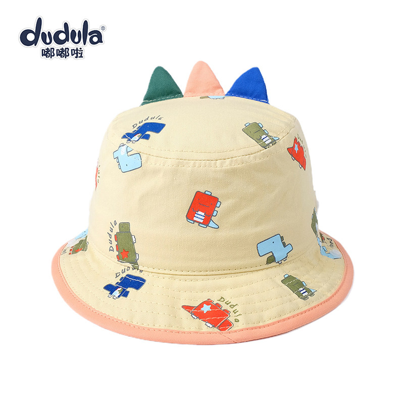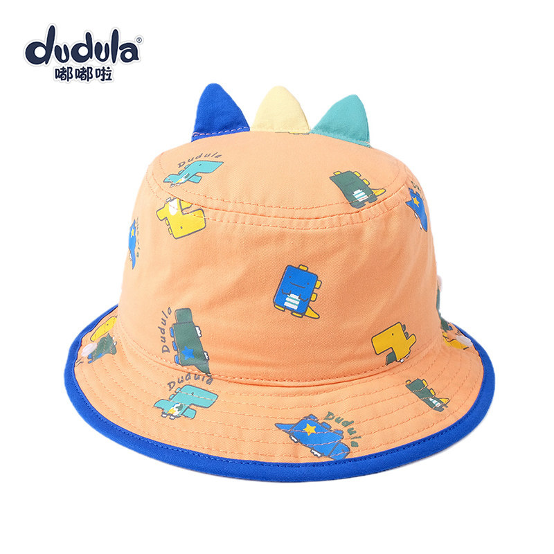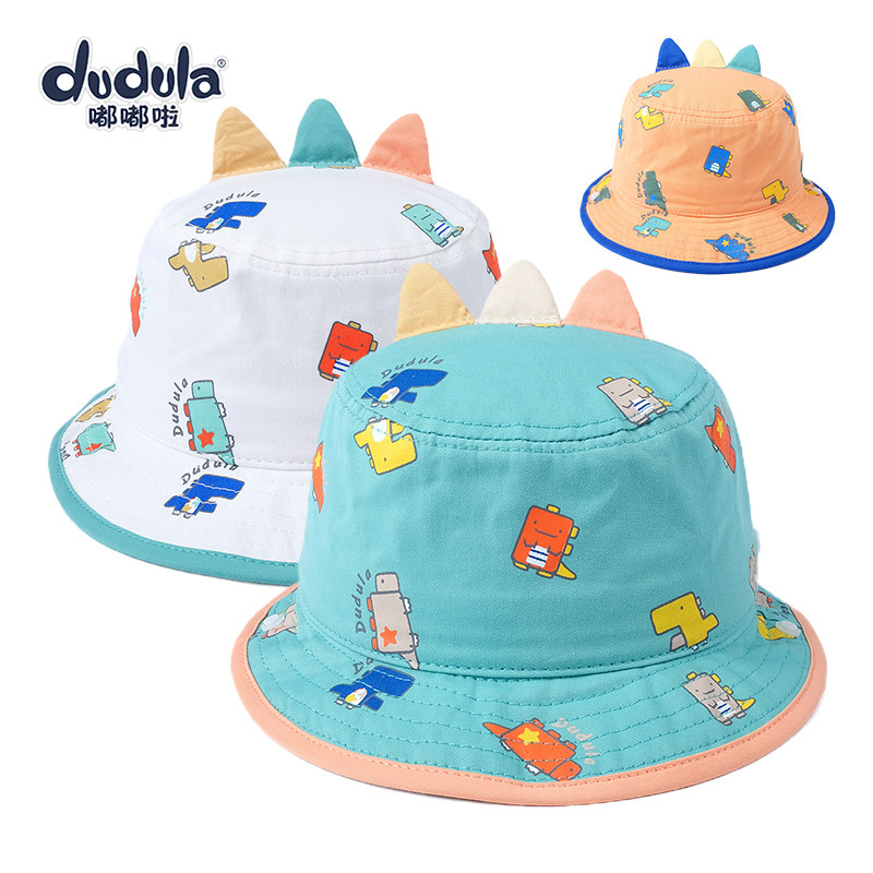 嘟嘟啦春薄婴幼儿童平顶盆帽女男宝宝渔夫帽遮太阳帽子卡通防晒帽