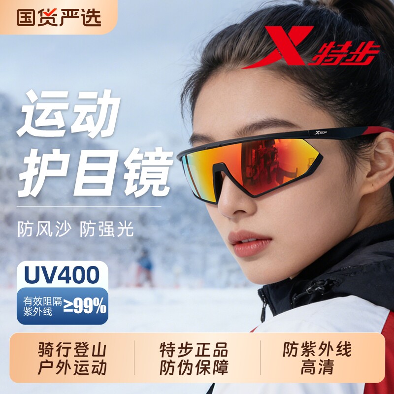 特步登山护目镜男女雪地墨镜骑行防风沙户外运动跑步太阳眼镜复古