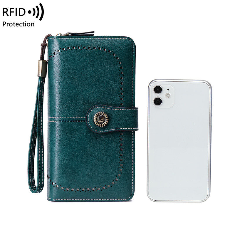 2026新款防盗刷手拿钱包油蜡皮长款手机包时尚多功能女士钱包时尚