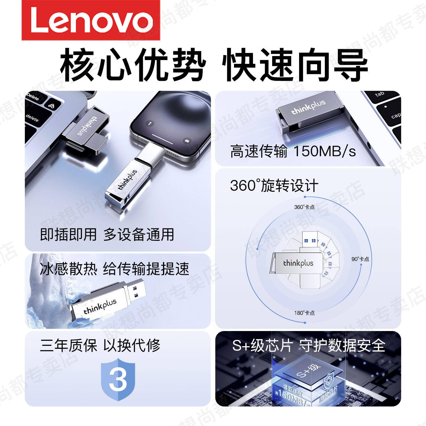 联想官方正品u盘128g大容量电脑手机两用高速优盘64g定制刻字32g