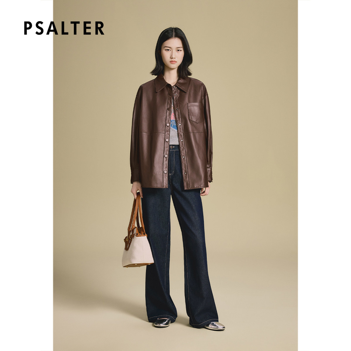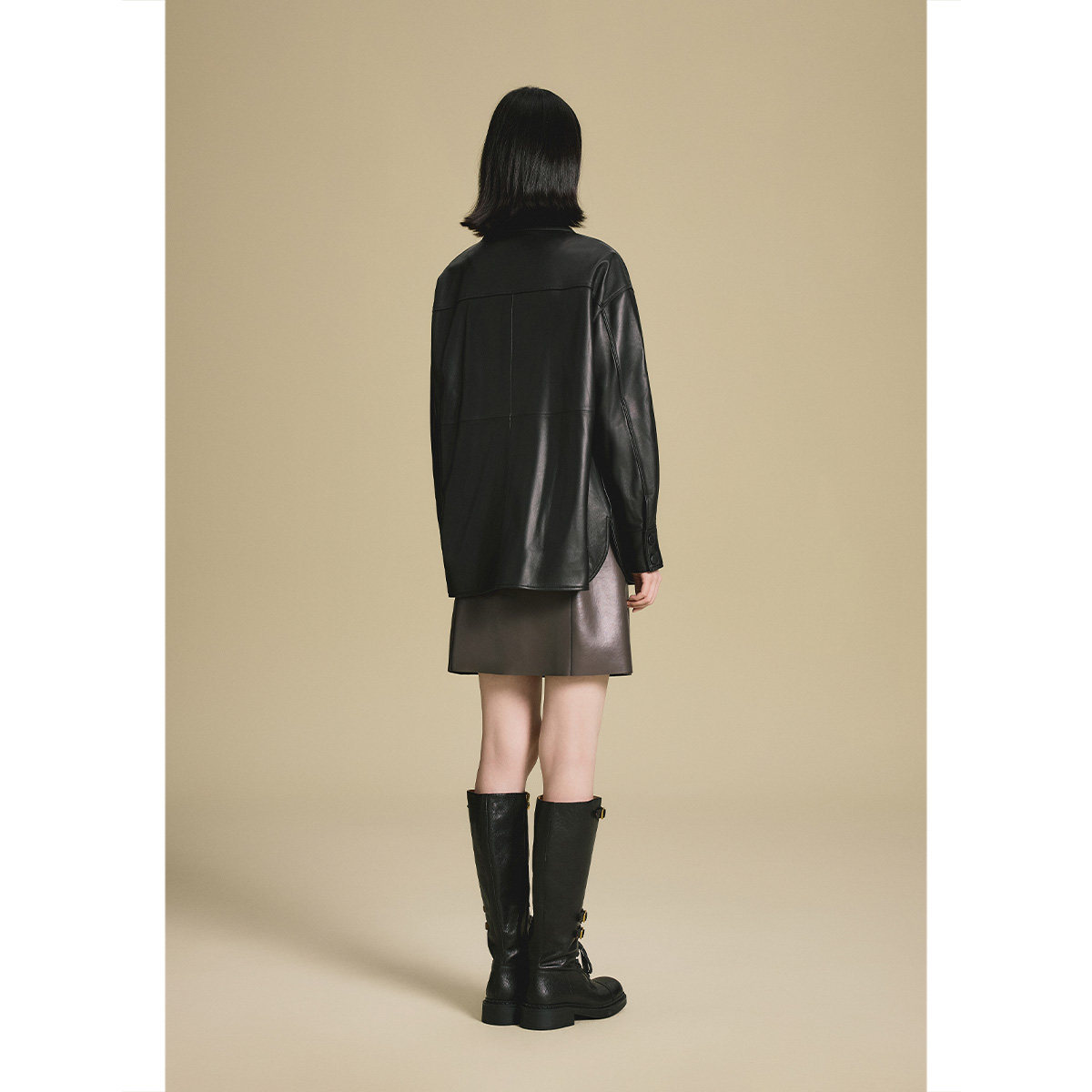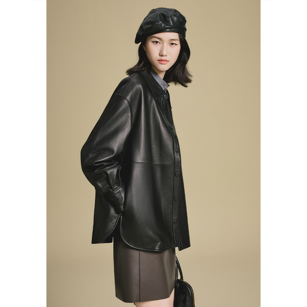 诗篇专选百搭休闲宽松显瘦真皮皮衣衬衫式外套2025秋款