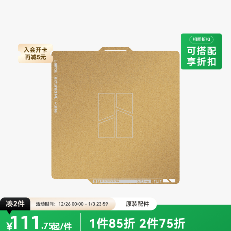 Bambu Lab拓竹3D打印机金色纹理PEI打印面板