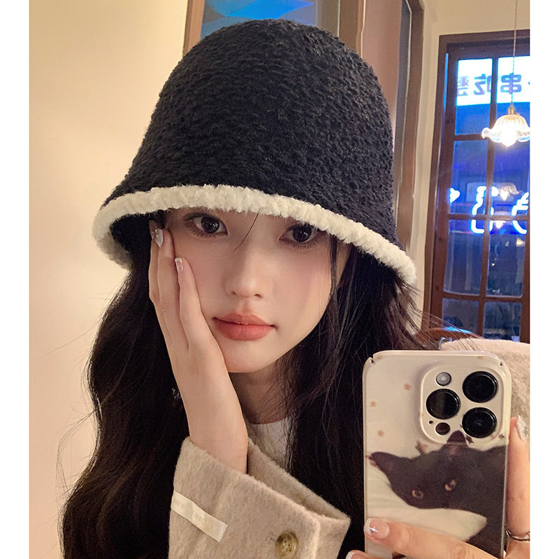 网红同款渔夫帽盆帽女士秋冬季保暖圆顶水桶帽舒适有型韩版潮帽子
