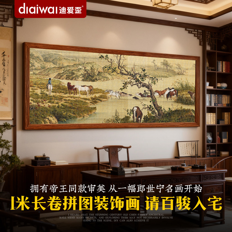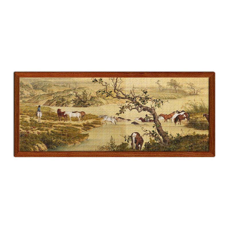 迪爱歪马上成功上岸拼图1000片相框郎世宁国风名画礼盒送百骏图