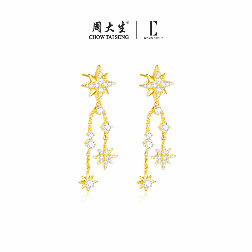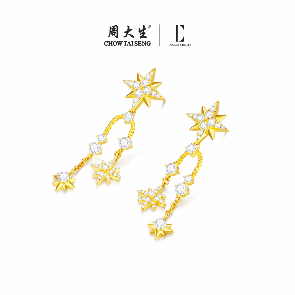 周大生DC絮语星光星芒耳钉女生纯银S925轻奢高级感耳饰生日礼物