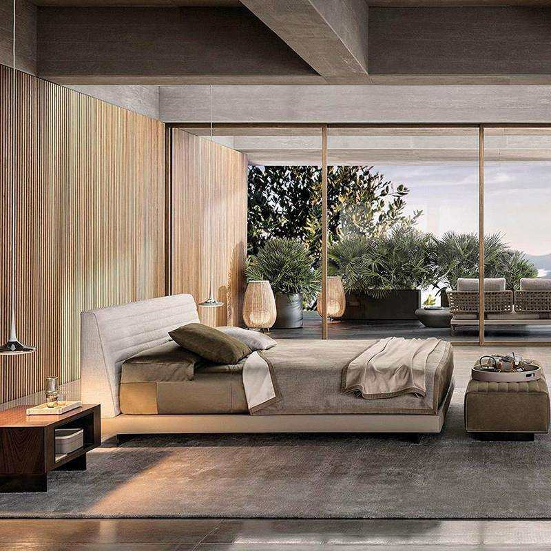 意式极简轻奢布艺双人床齐边1.8米大床皮布结合小户型悬浮罗杰床