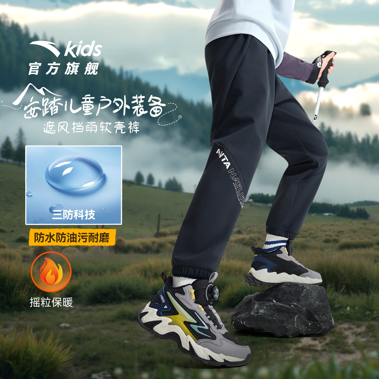 安踏儿童装男童加绒裤子秋冬2025冬季新款三防长裤工装休闲运动裤