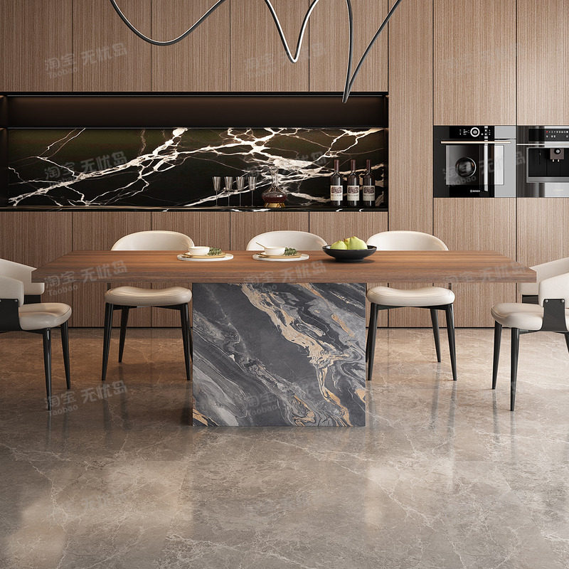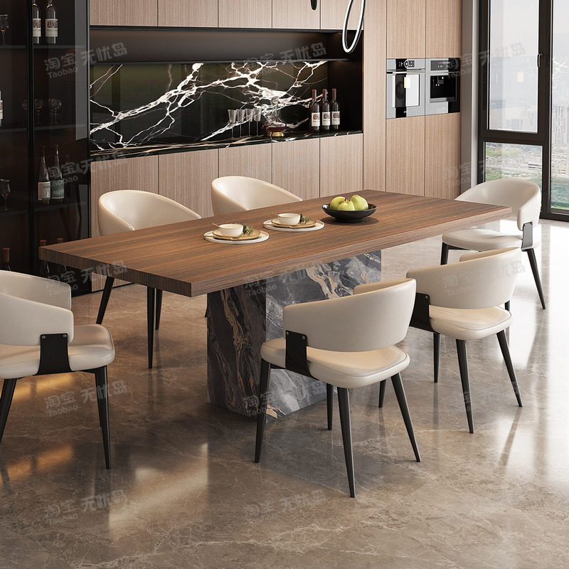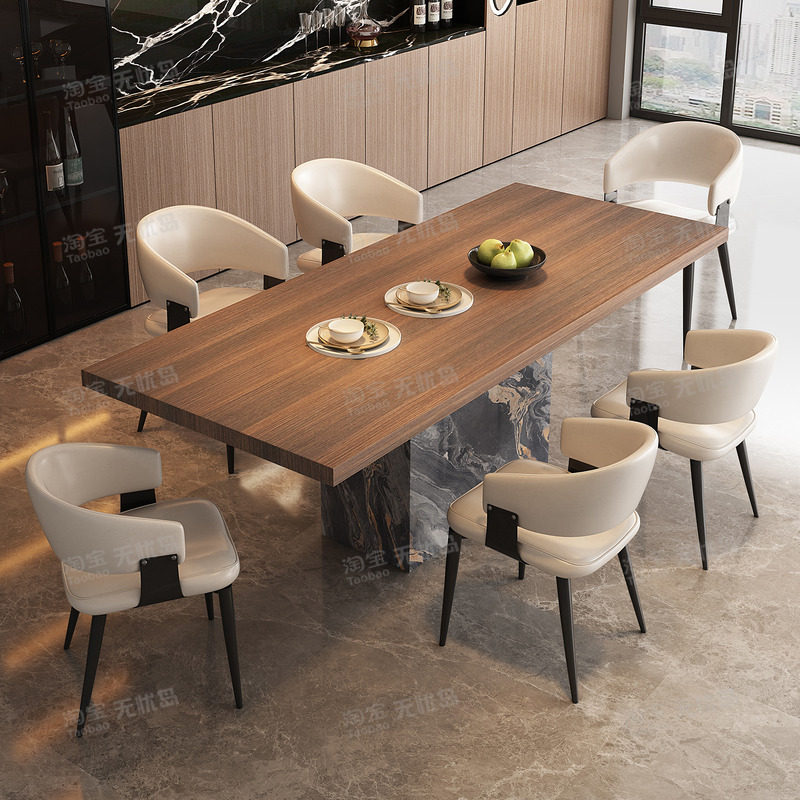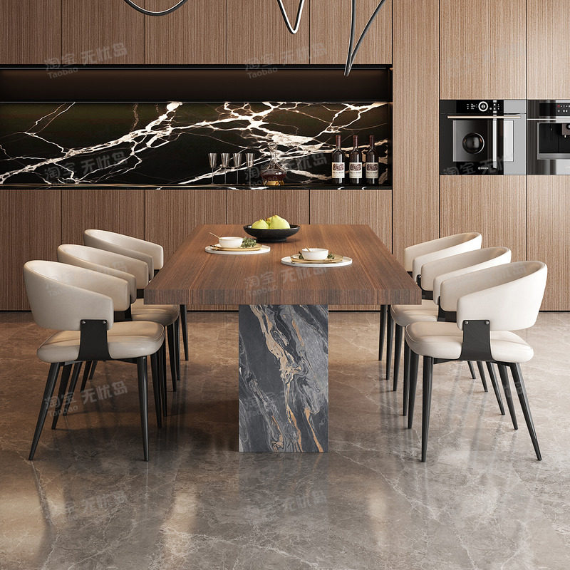设计师高级感饭桌高端大气岩板长方形餐厅意式极简长餐桌椅组合