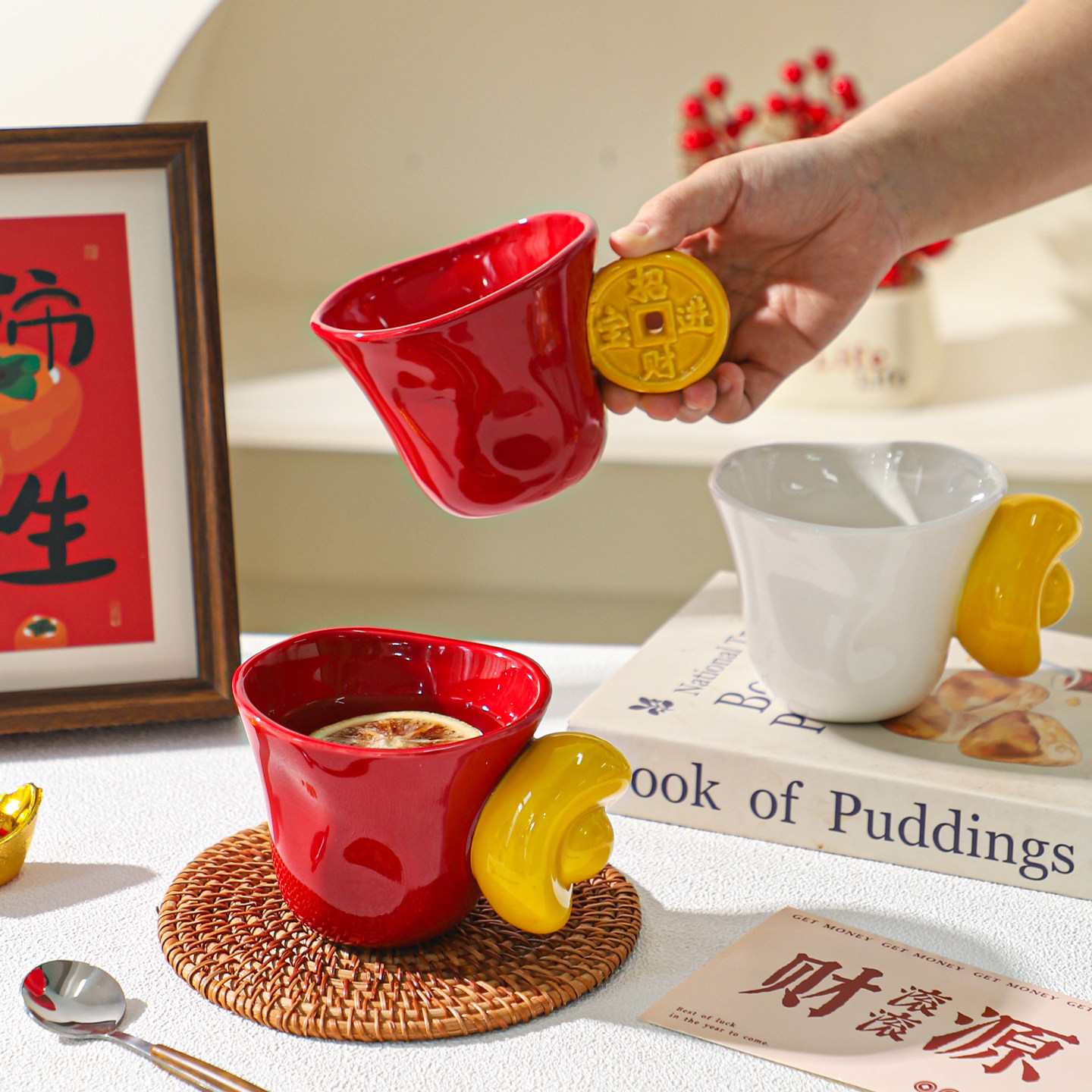 原创小众红苹果咖啡杯简约手绘陶瓷杯复古翻口马克杯水杯情侣礼物