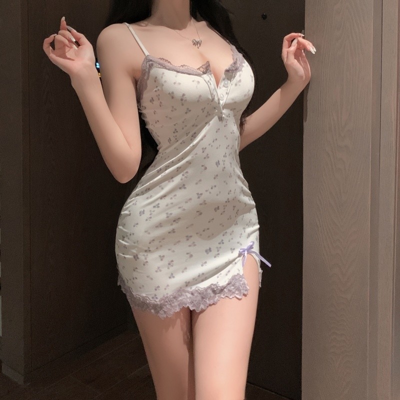 无品牌/无注册商标2025纯欲风紫色碎花睡裙春意春色高级感睡衣