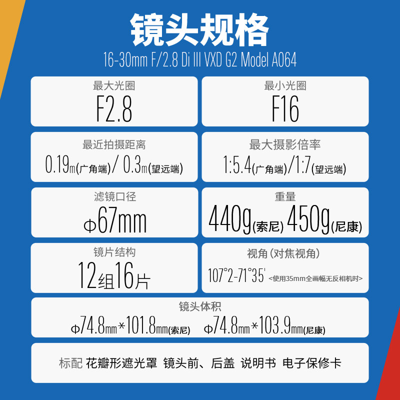 腾龙16-30mmF2.8G2 索尼E口 尼康Z口 变焦腾龙1630腾龙镜头官方