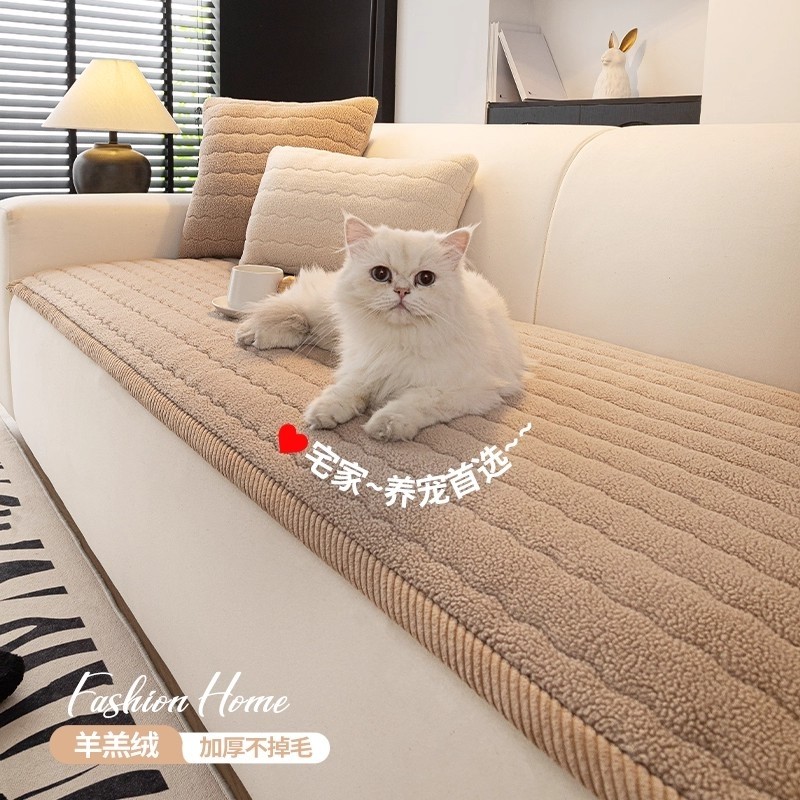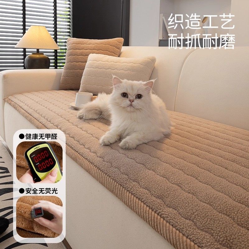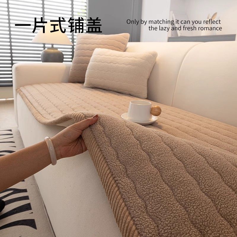 ins奶油风沙发盖垫2025新款一片式毛绒防滑坐垫子防猫抓中式灰色