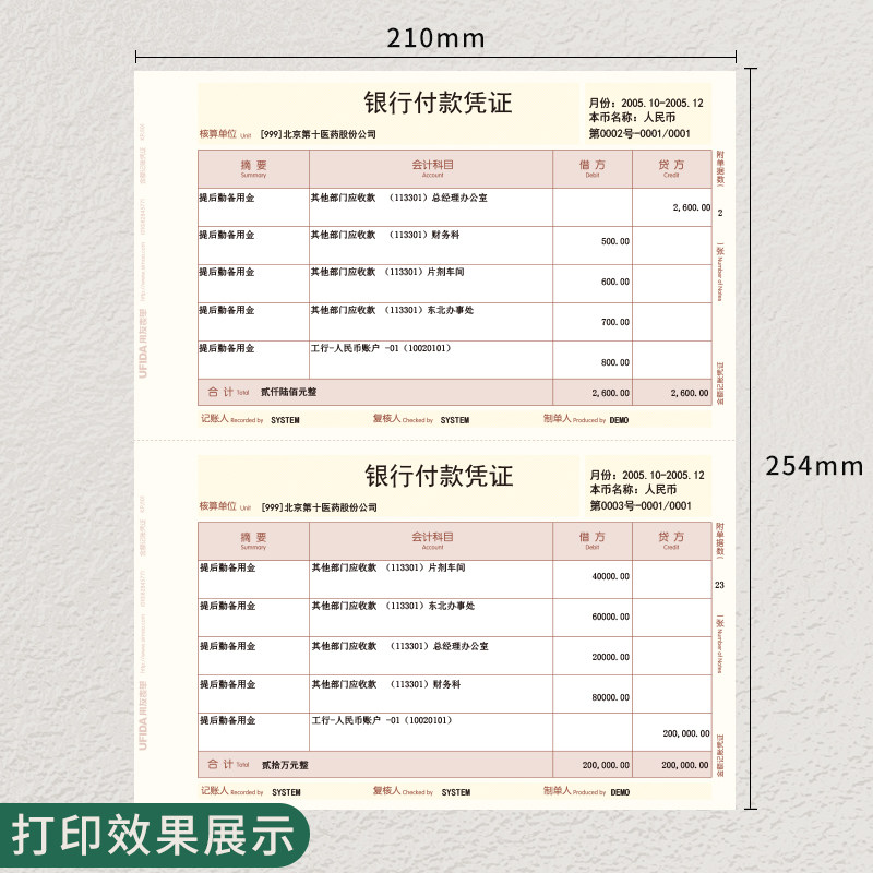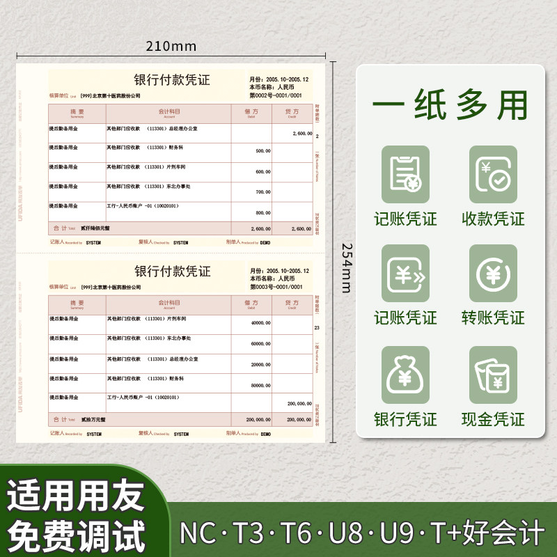 用友凭证纸标准款KPJ101西玛激光金额记账凭证打印纸210*127 KPJ101凭证纸用友软件T3 T1 T6 G6 U8好会计凭证