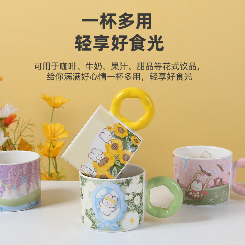 趣皿卡通陶瓷杯少女心马克杯可爱咖啡杯情侣水杯高颜值早餐牛奶杯
