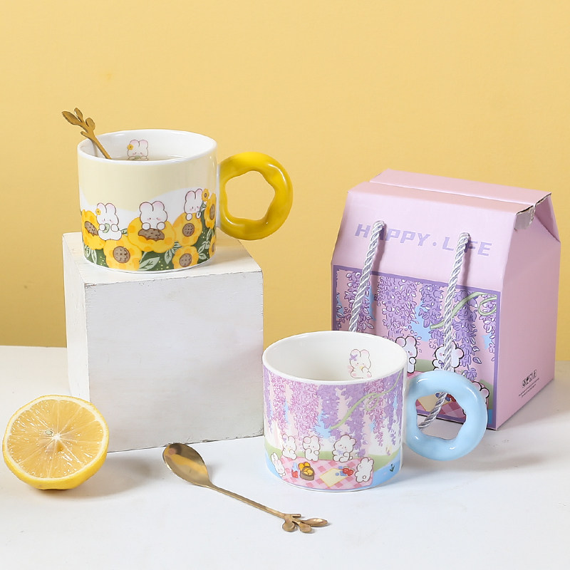创意高颜值陶瓷马克杯礼盒水杯少女心兔子杯早餐杯伴手礼情侣杯子