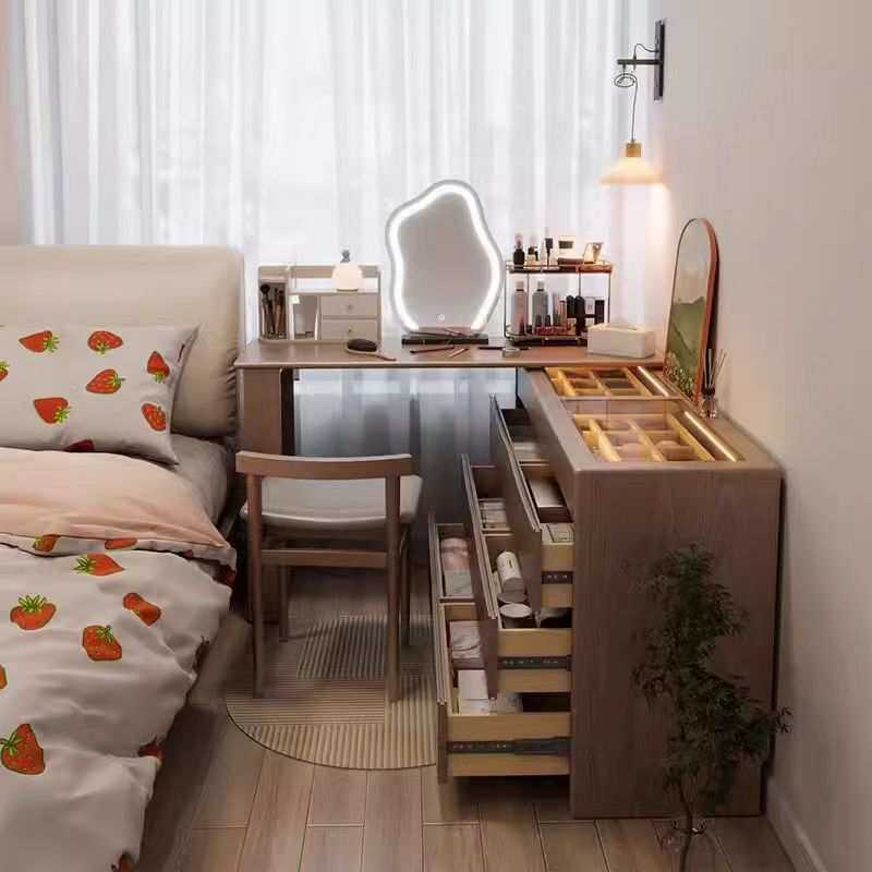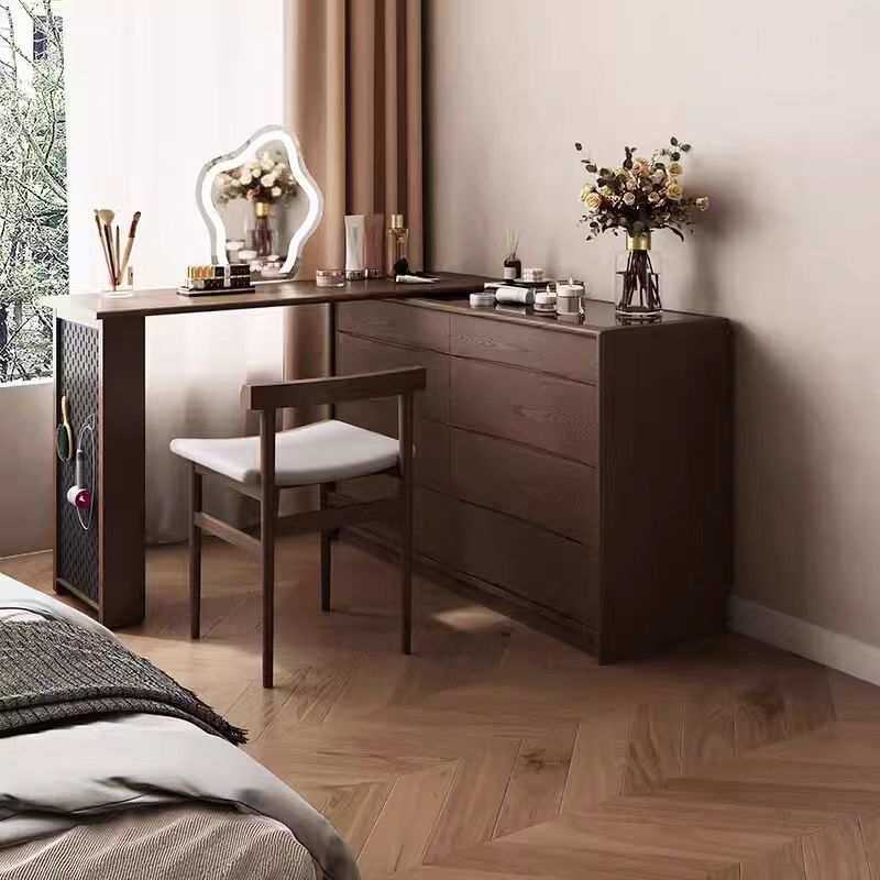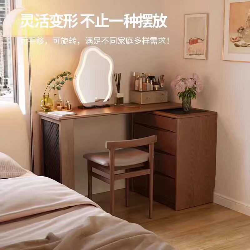 中式中古风实木梳妆台斗柜一体现代转角化妆桌床尾收纳柜橡木妆台