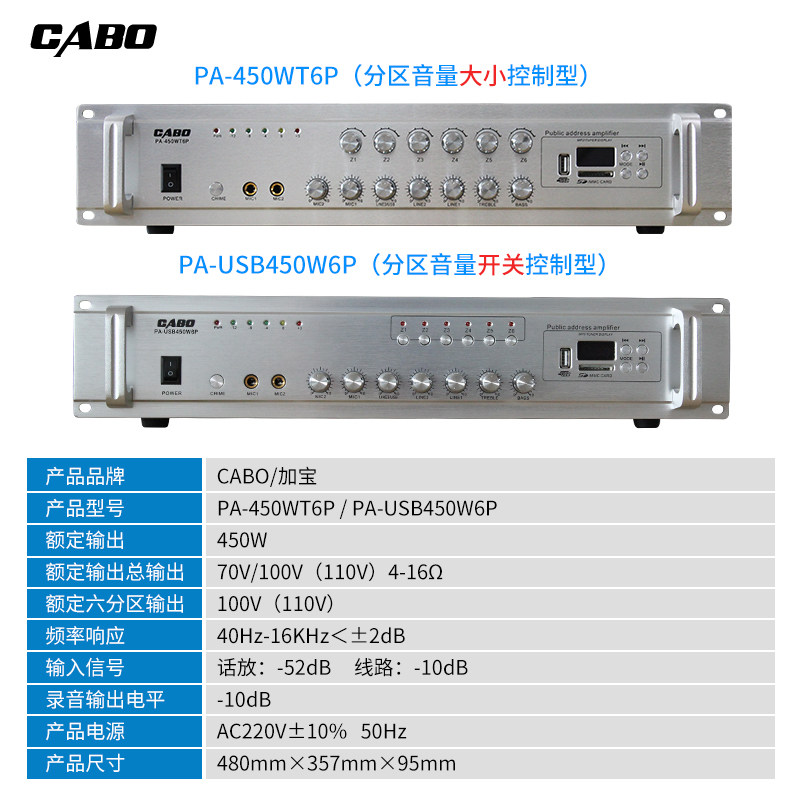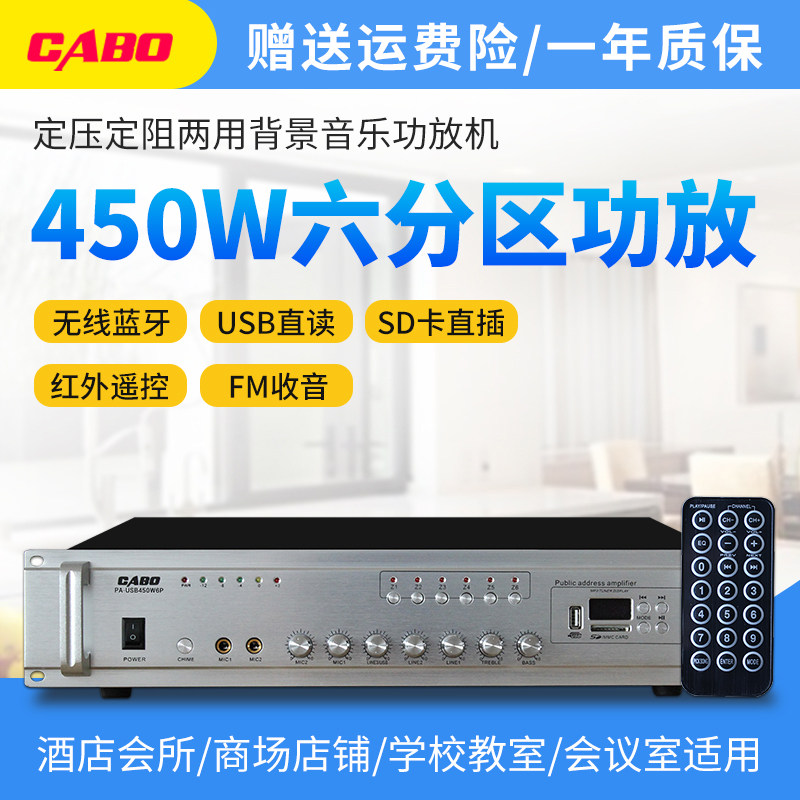 公共广播系统 450W大功率定压USB/SD/FM功放带遥控器 六分区功放