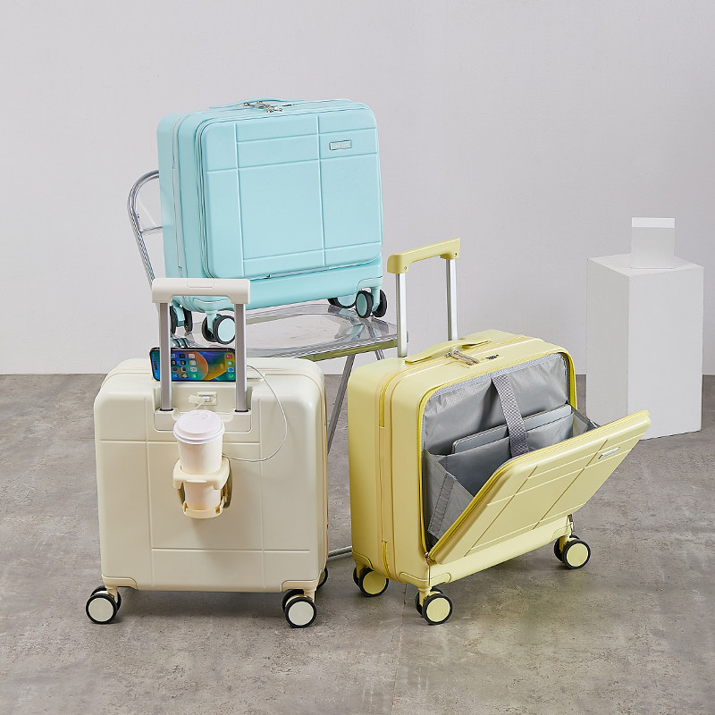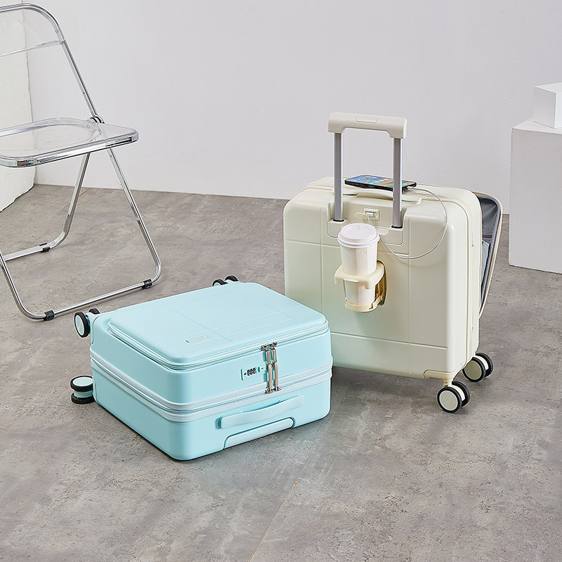 多功能前开口18寸登机箱女小型行李箱轻便旅行箱20寸拉杆箱男帆布