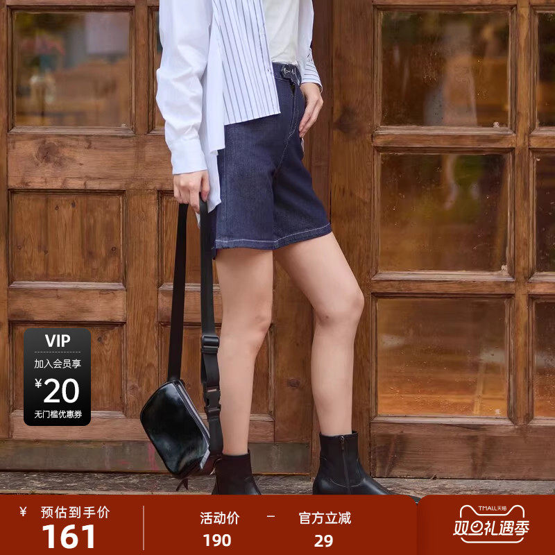 【sdeer奥莱】圣迪奥女装秋松紧拼接插袋牛仔A字短裤S24380901