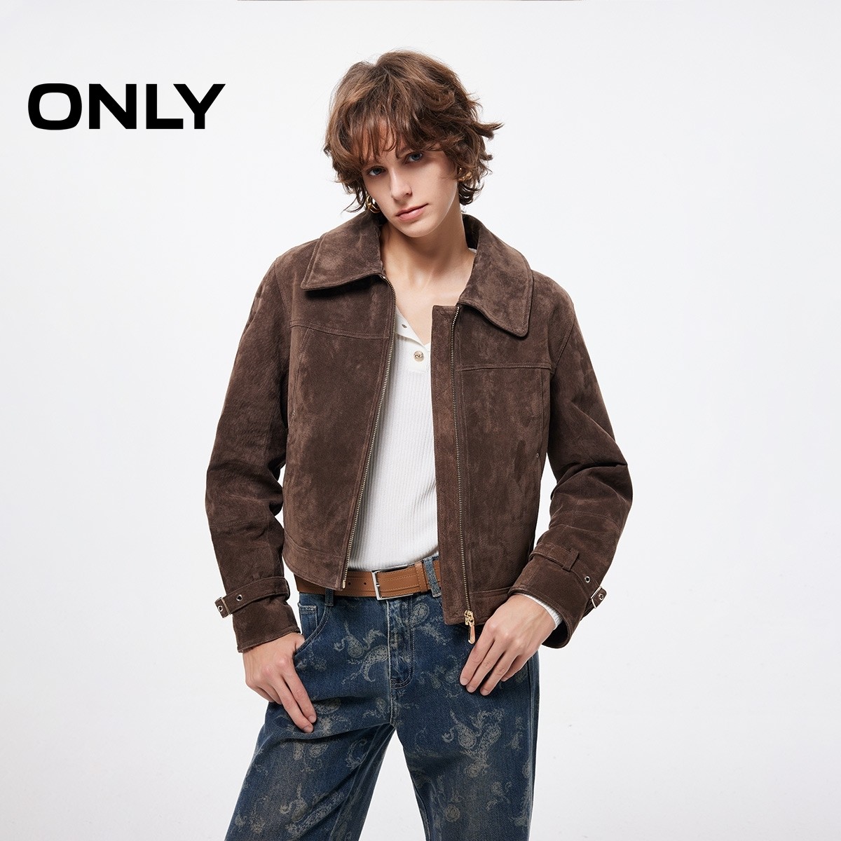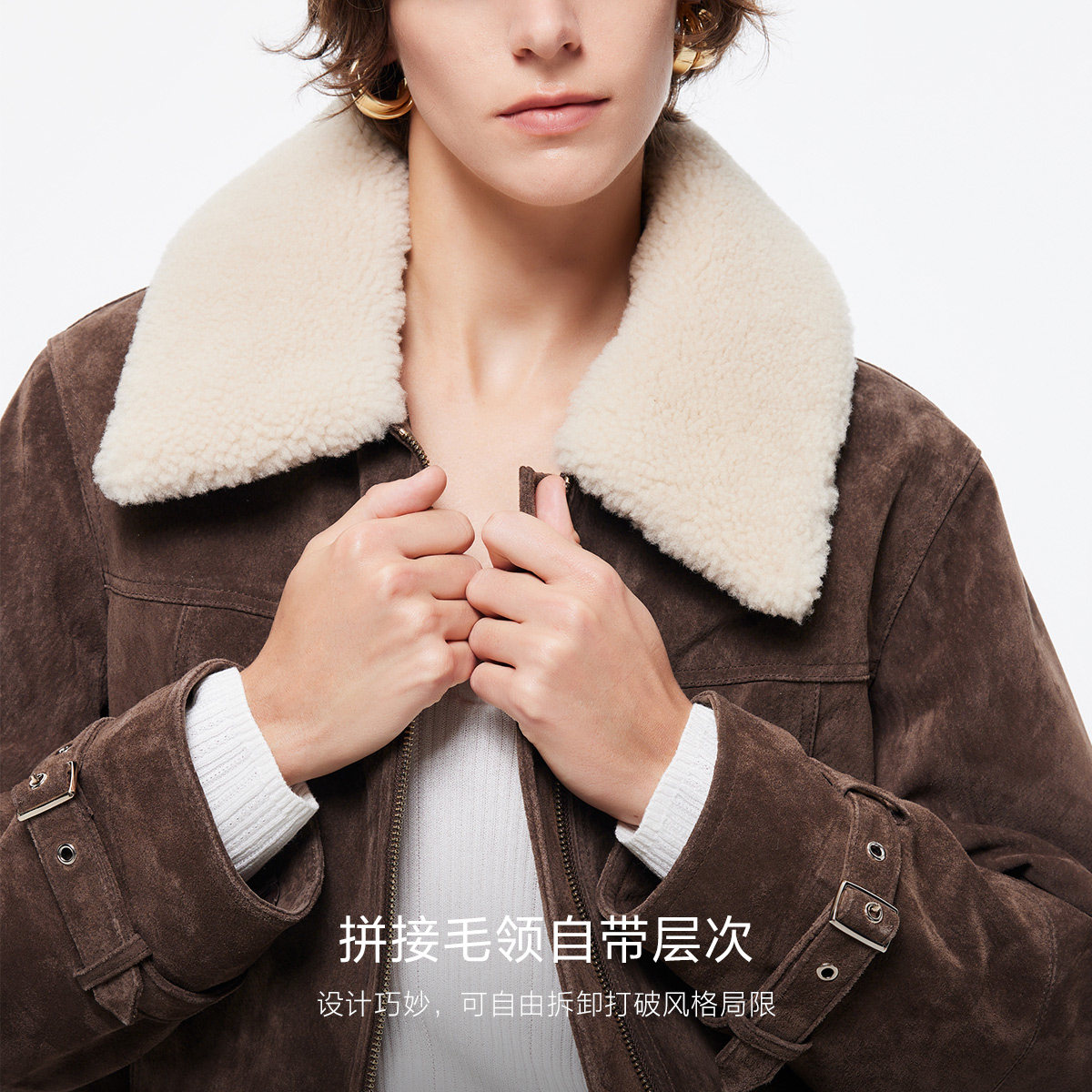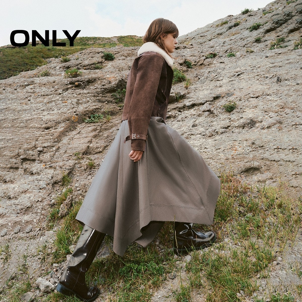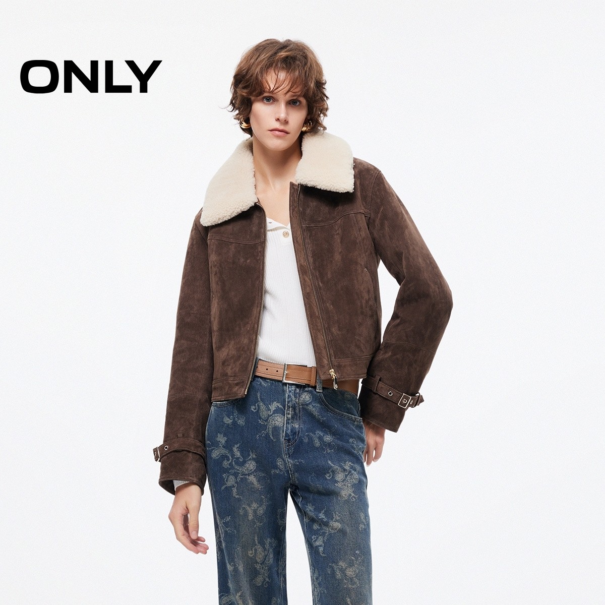 ONLY2025冬季新款利落蓬松可拆柔软羊毛领舒适有型正肩皮衣女