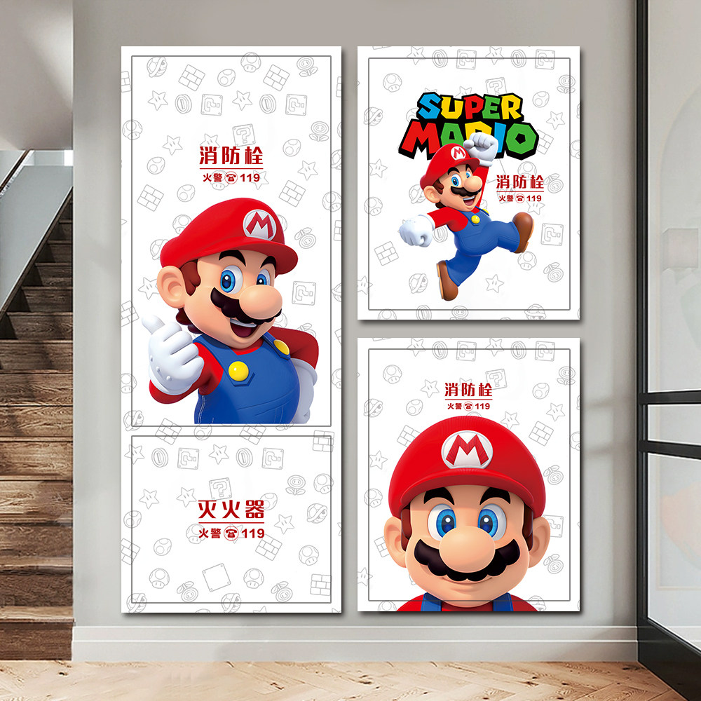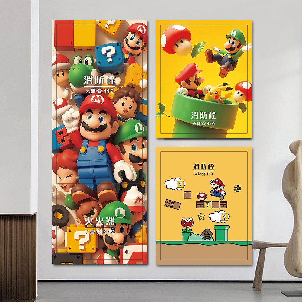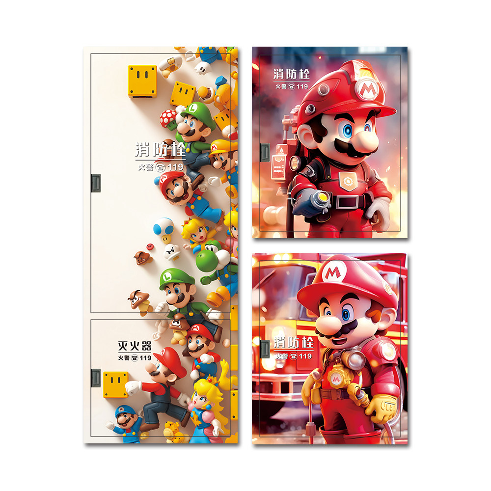 马里奥消防栓贴纸装饰遮挡柜门消火栓创意美化定制灭火器电水井门