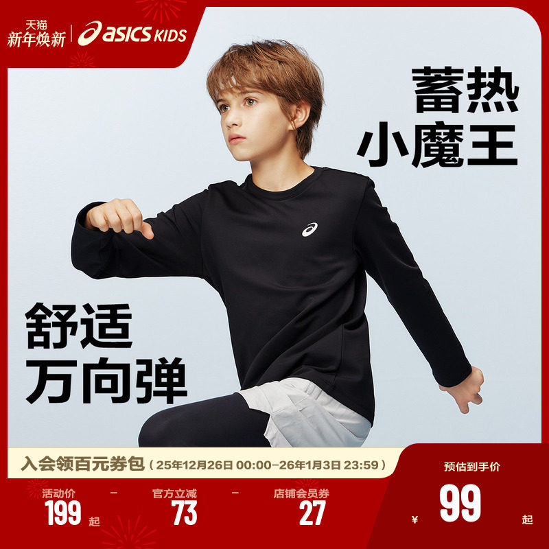 ASICS/亚瑟士童装25年冬季儿童吸湿排汗长袖T恤蓄热保暖基础百搭