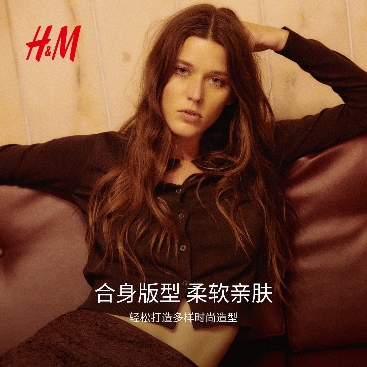 HM女装毛针织衫2025冬新款内搭打底衫气质感毛衣开衫外套0579541