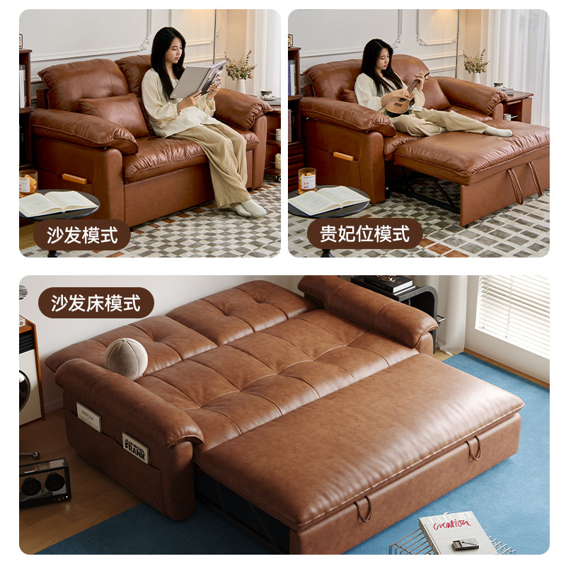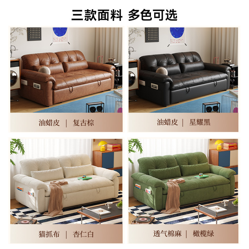 木宫匠家具胖猫沙发床中古风小户型客厅沙发折叠一体两用2025新款