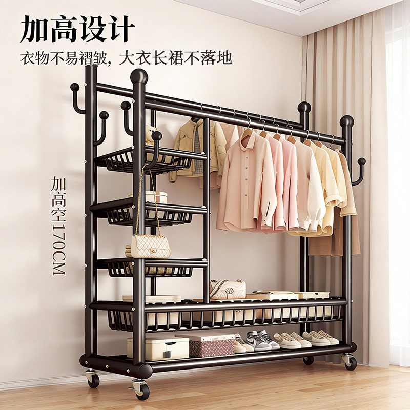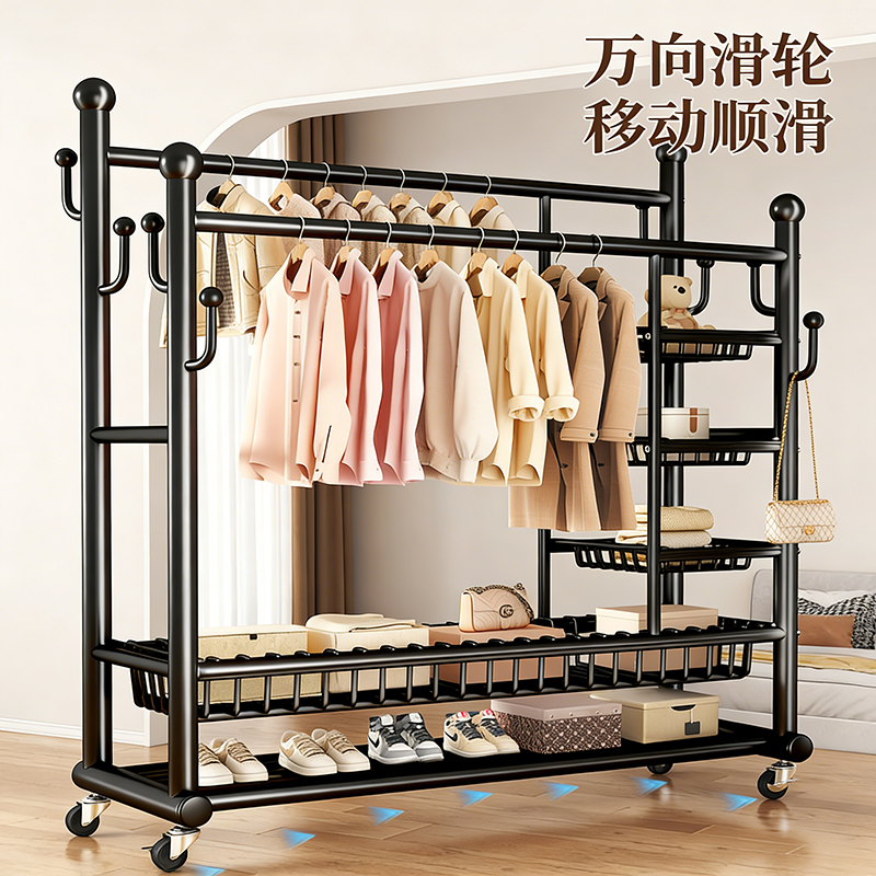 挂衣架落地家用卧室可移动双杆大容量衣帽架阳台加粗加厚晾衣架子