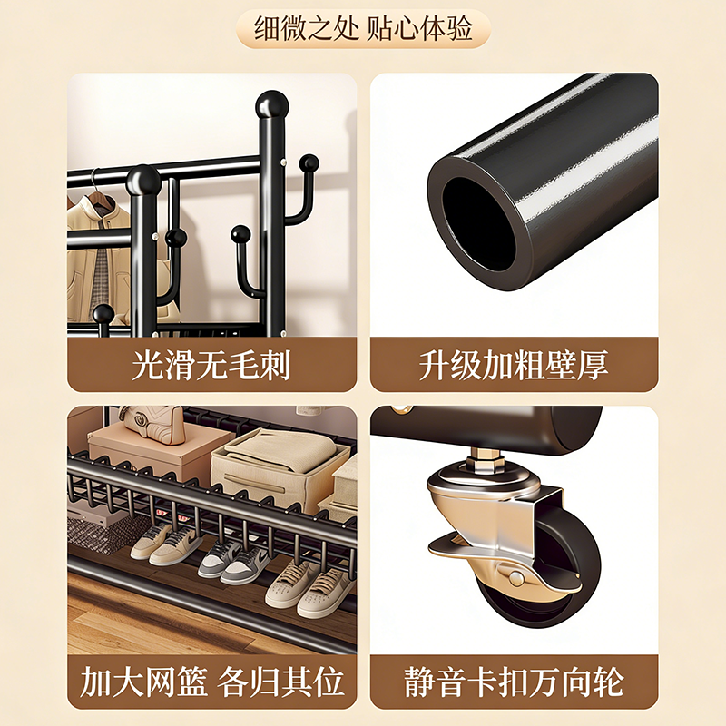 衣帽架落地卧室家用房间挂衣架置物晾衣架简易移动收纳挂衣服架子