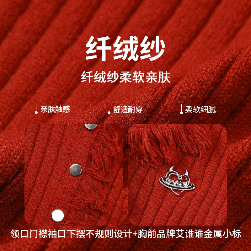 妖精的口袋不规则修身针织衫女2025年冬新款内搭新年战袍红色上衣
