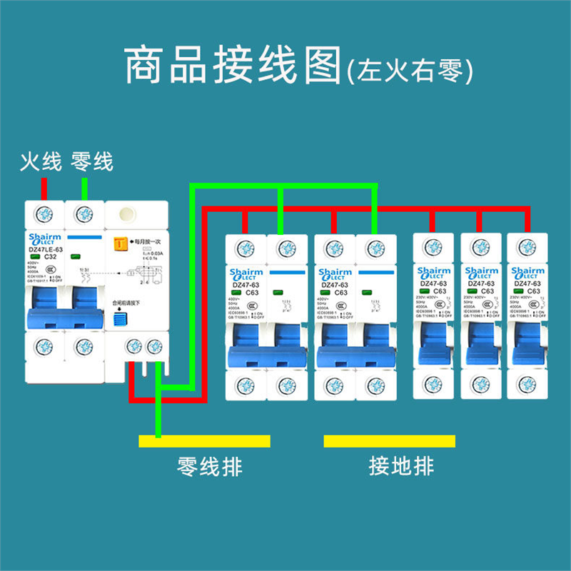 施耐德EA9空气开关1P断路器2P空开开关3P家用4P空调保护总电闸63A