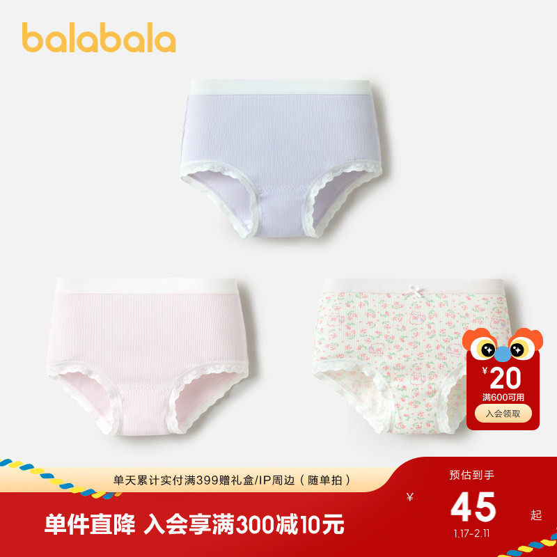 巴拉巴拉女童内裤平角儿童三角短裤小大童宝宝不夹PP抗菌萌三条装