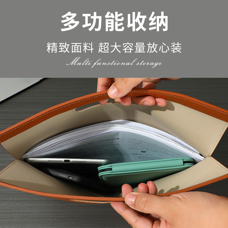 A4皮质文件袋档案袋文件包A5拉链加厚防水资料袋按扣商务公文袋办公合同票据收纳手提便携大容量定制可印logo