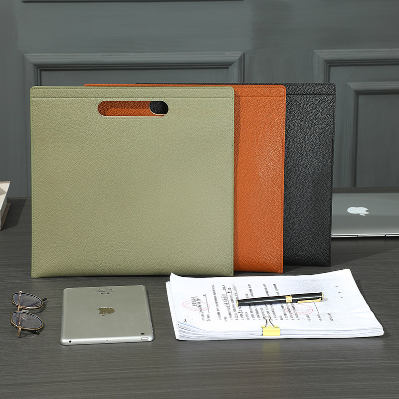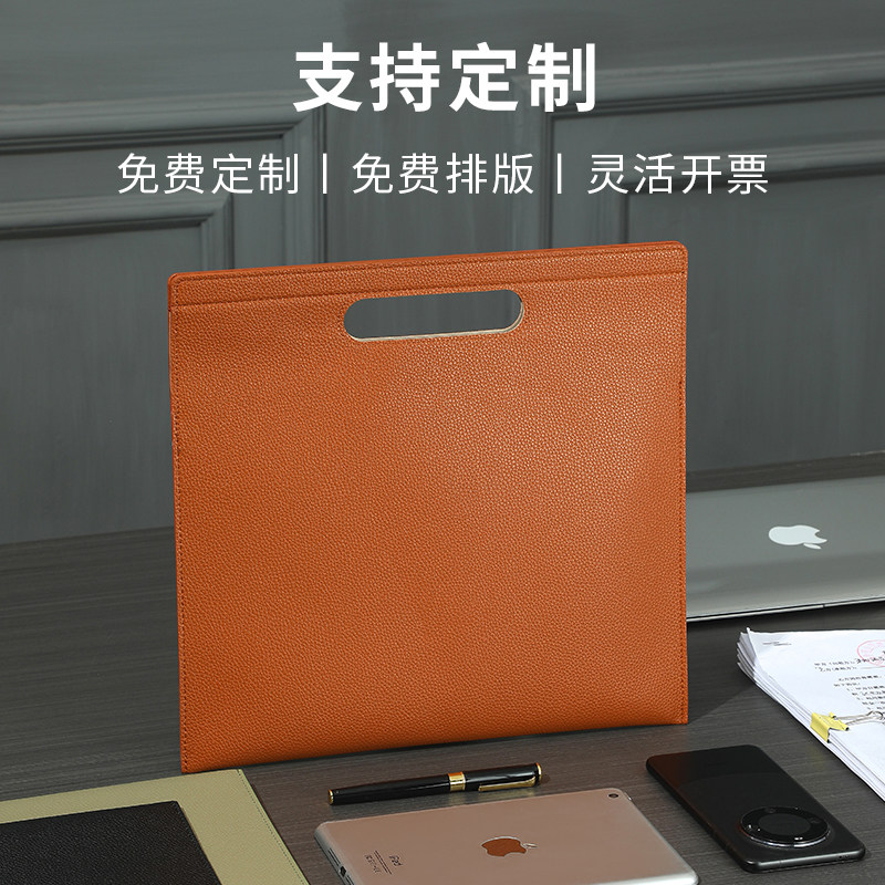 新款A4荔枝纹手提文件袋皮质定制大容量防水商务办公档案资料袋便携公文包可印logo加厚收纳文件包耐磨