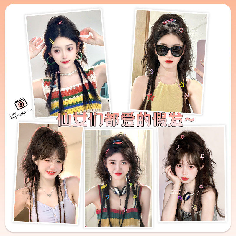 假发辫子女马尾长发仿真发抓夹秋冬瀑布半扎高马尾y2k麻花拳击辫
