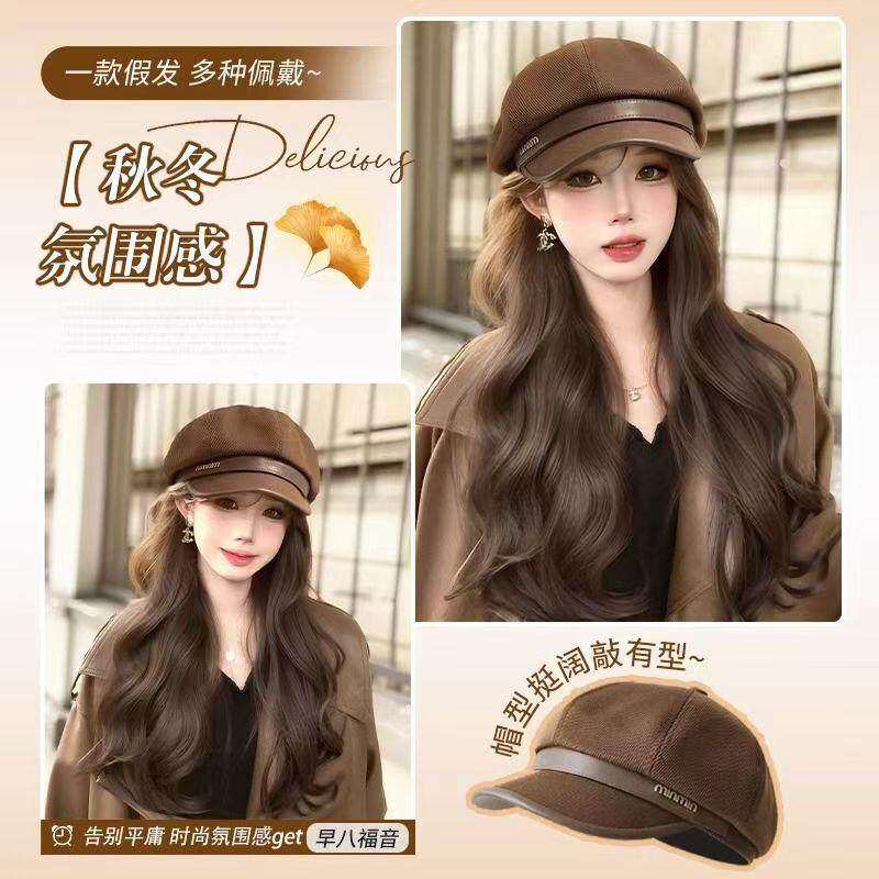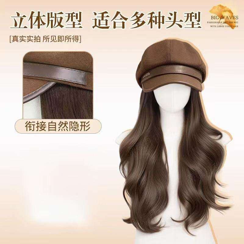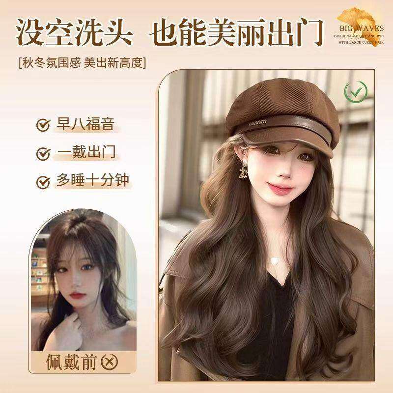 帽子假发一体2025新款气质时尚八角帽逼真自然大波浪长卷发贝雷帽