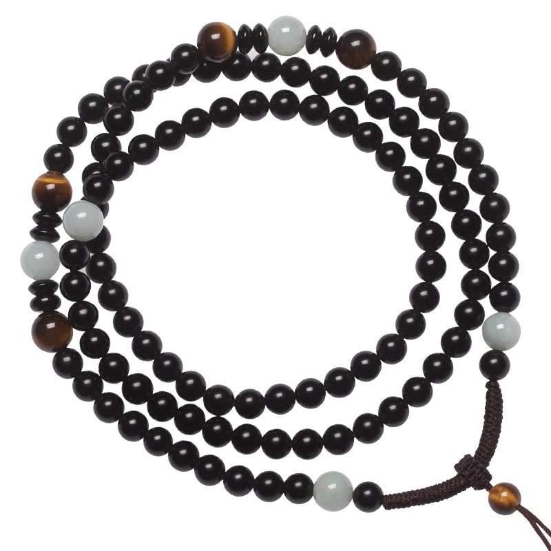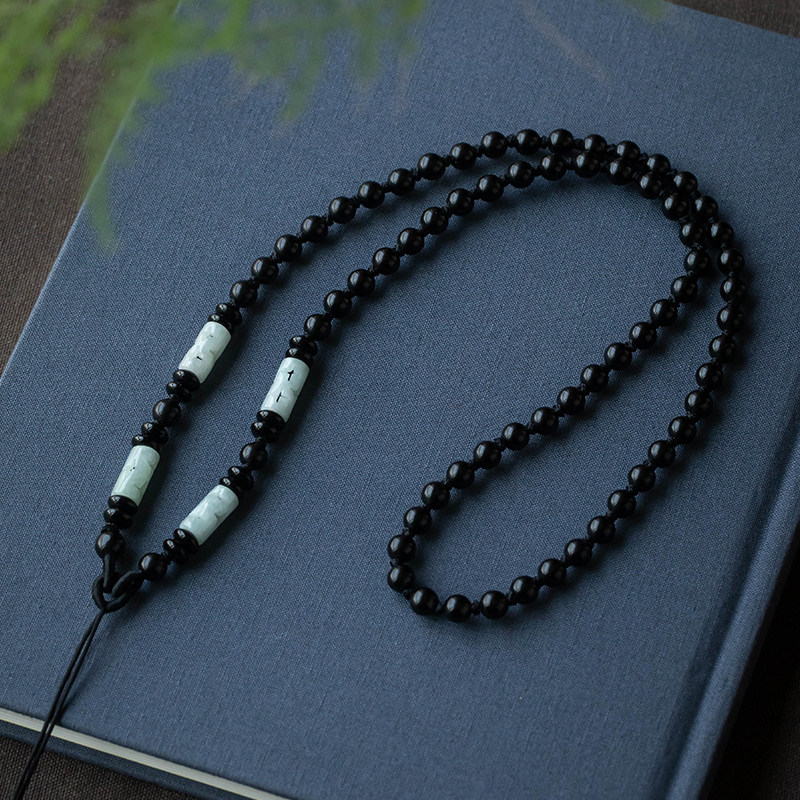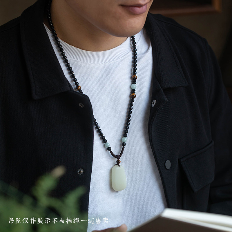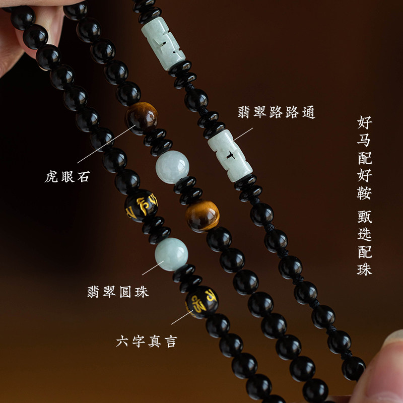 黑曜石全珠链吊坠挂绳男款玉石翡翠项链绳平安扣串珠编织挂件绳女
