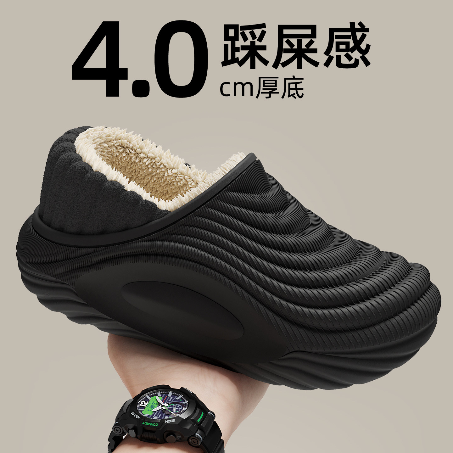 踩屎感棉拖鞋男士冬季2025新款包跟保暖加绒加厚防滑防水棉鞋外穿