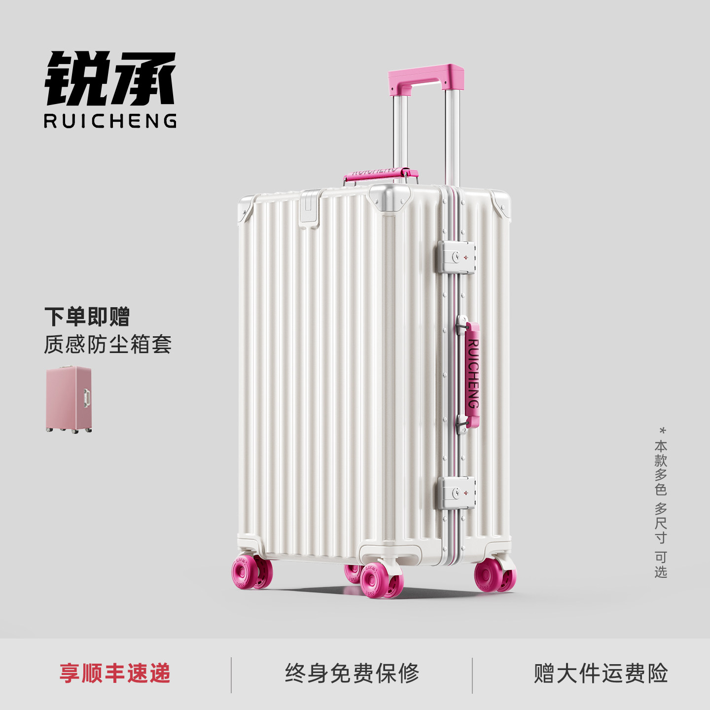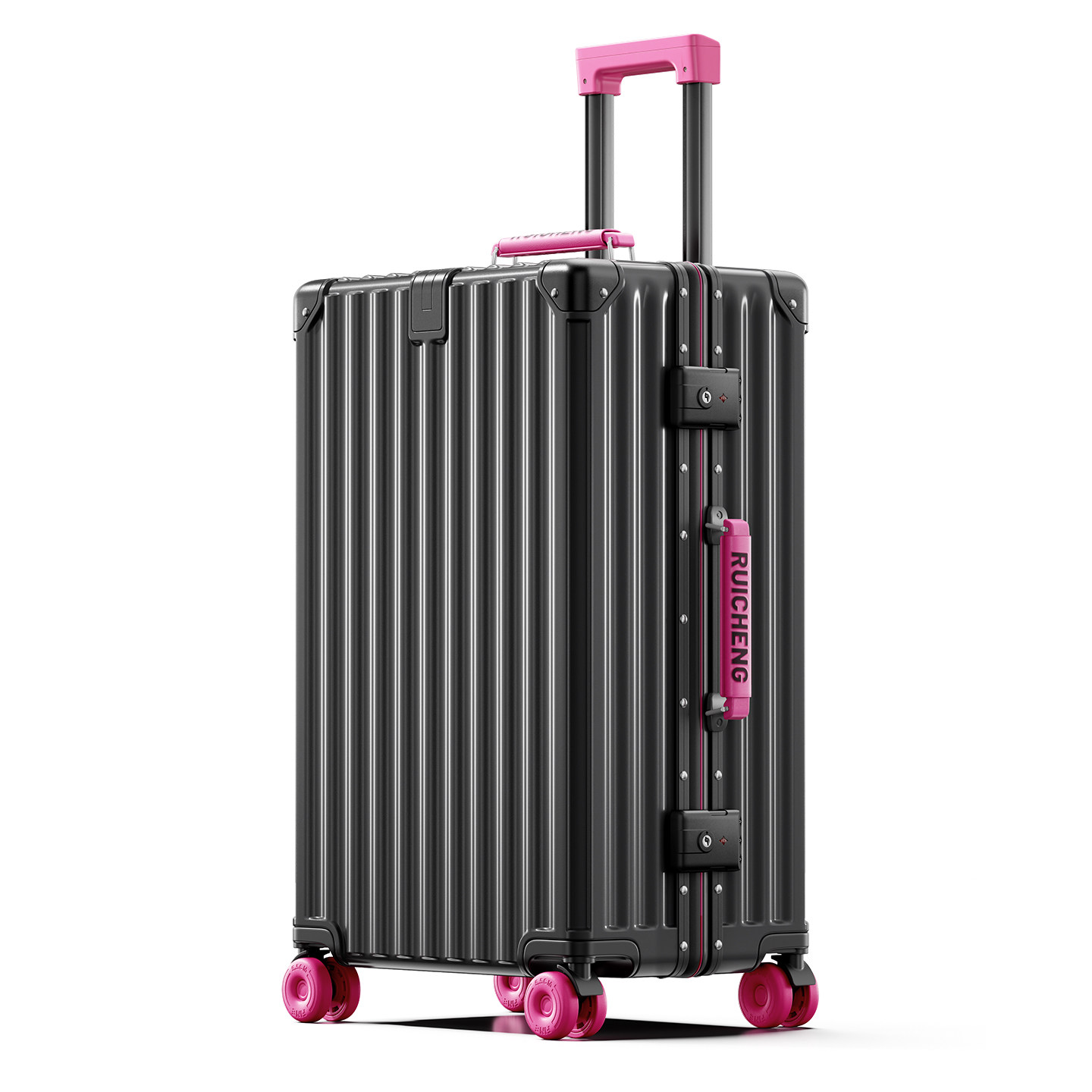 新款溜冰轮行李箱高颜值撞色皮把手铝框款