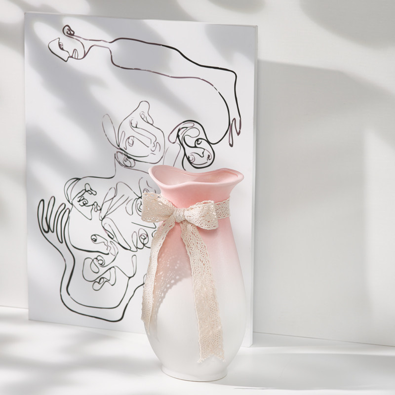圣诞渐变粉色陶瓷花瓶干花玄关摆件轻奢高级感客厅插花家居装饰品