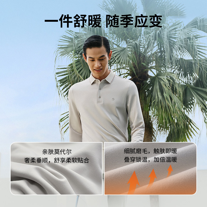 【柔软抗皱】金利来秋冬新款柔软商务男式长袖T恤上衣翻领polo衫