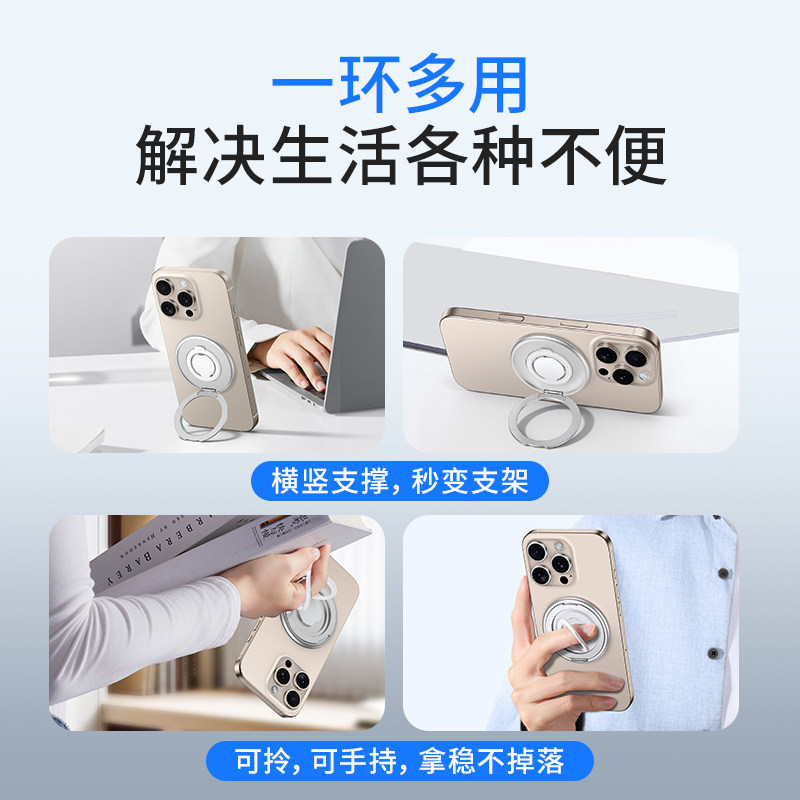 新款手机支架magsafe双面磁吸指环扣强力车载多功能支撑旋转桌面
