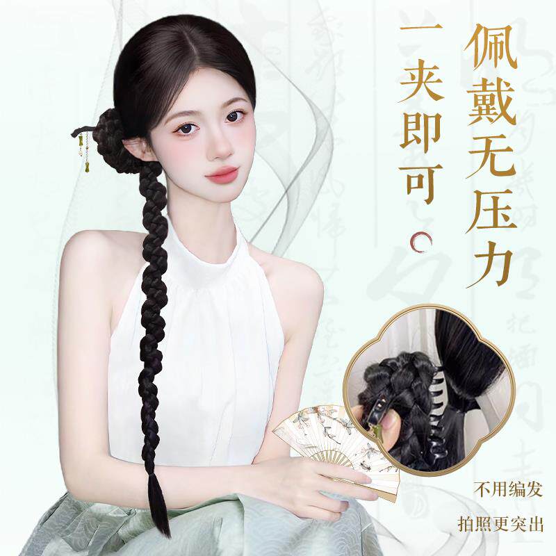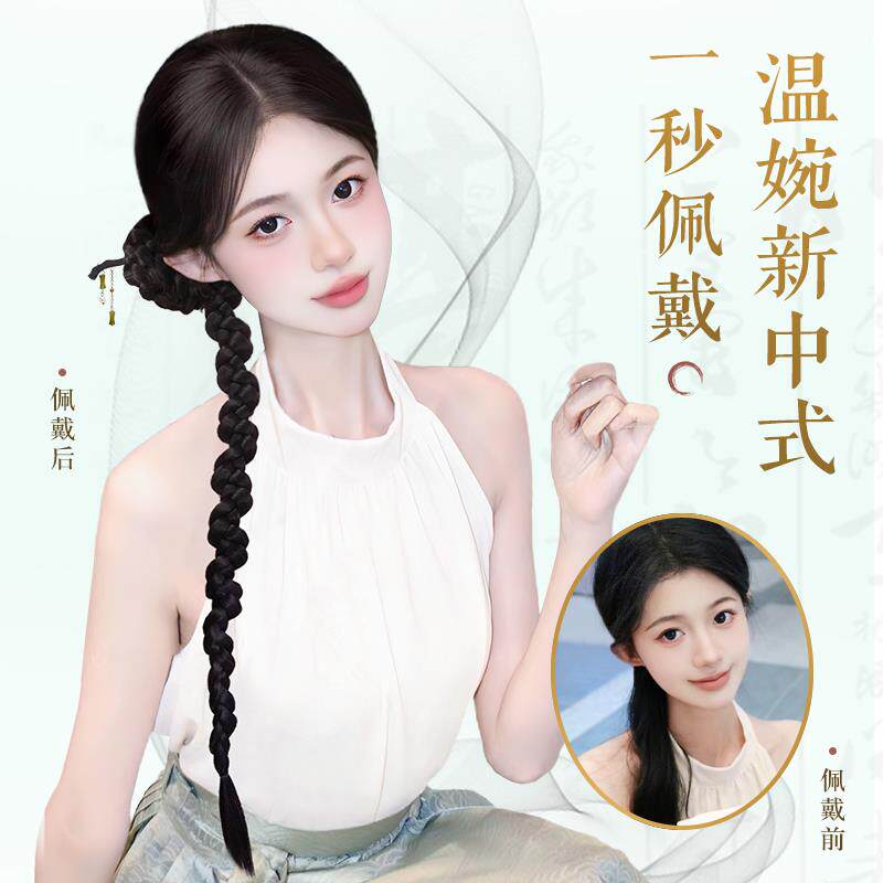 假发辫子女新中式温婉侧扎麻花长辫子古风旗袍国风扭扭辫子假马尾